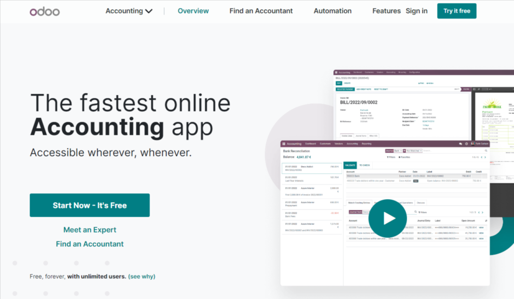 Odoo is accounting software that can be deployed on the cloud as well as on-premise. It is designed to help SMEs to manage daily accounting activities with ease and simplicity. The software can be accessed on any device and operating system. It offers a 15-day free trial, and customers can purchase various modules (invoicing, accounting, CRM, etc.) as per their needs. It allows SMEs to stay within budget and only pay for the modules that are essential for the business. Whether it is bank reconciliation, performance reports, or paying multiple invoices, Odoo makes the accounting process seamless and super fast.
